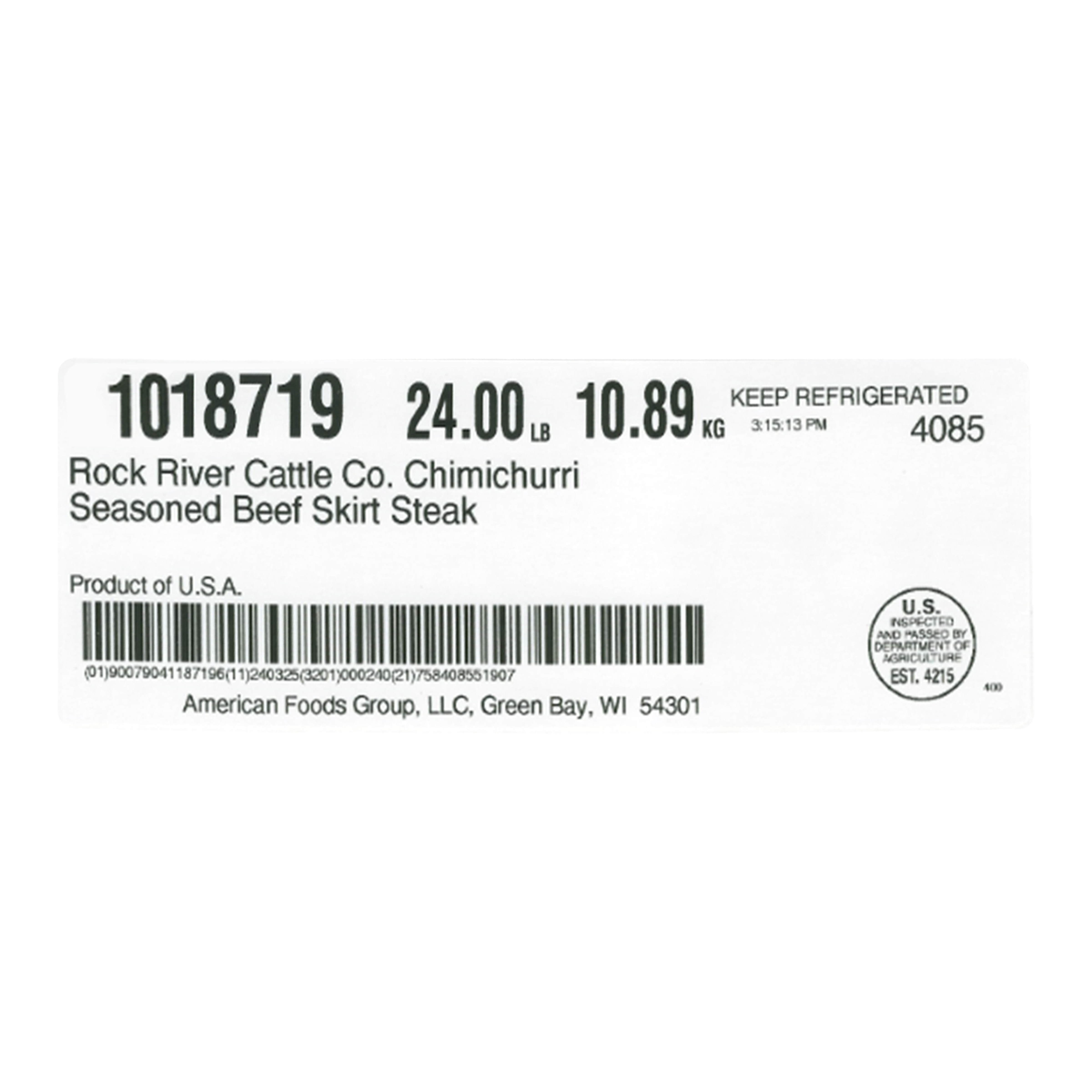 Chimichurri Seasoned Beef Skirt Steak 6/1.5 lb Avg