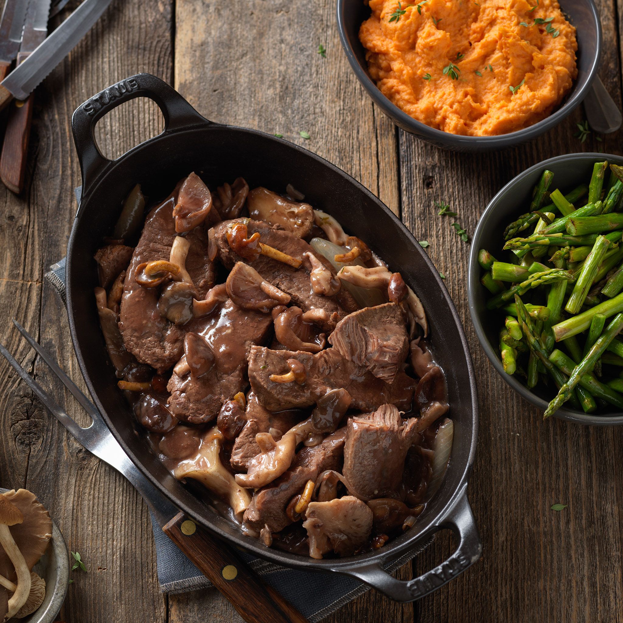 Try this bold recipe today. Beef Short Ribs and mushrooms are braised in beef stock and red wine for a deep delicious flavor.